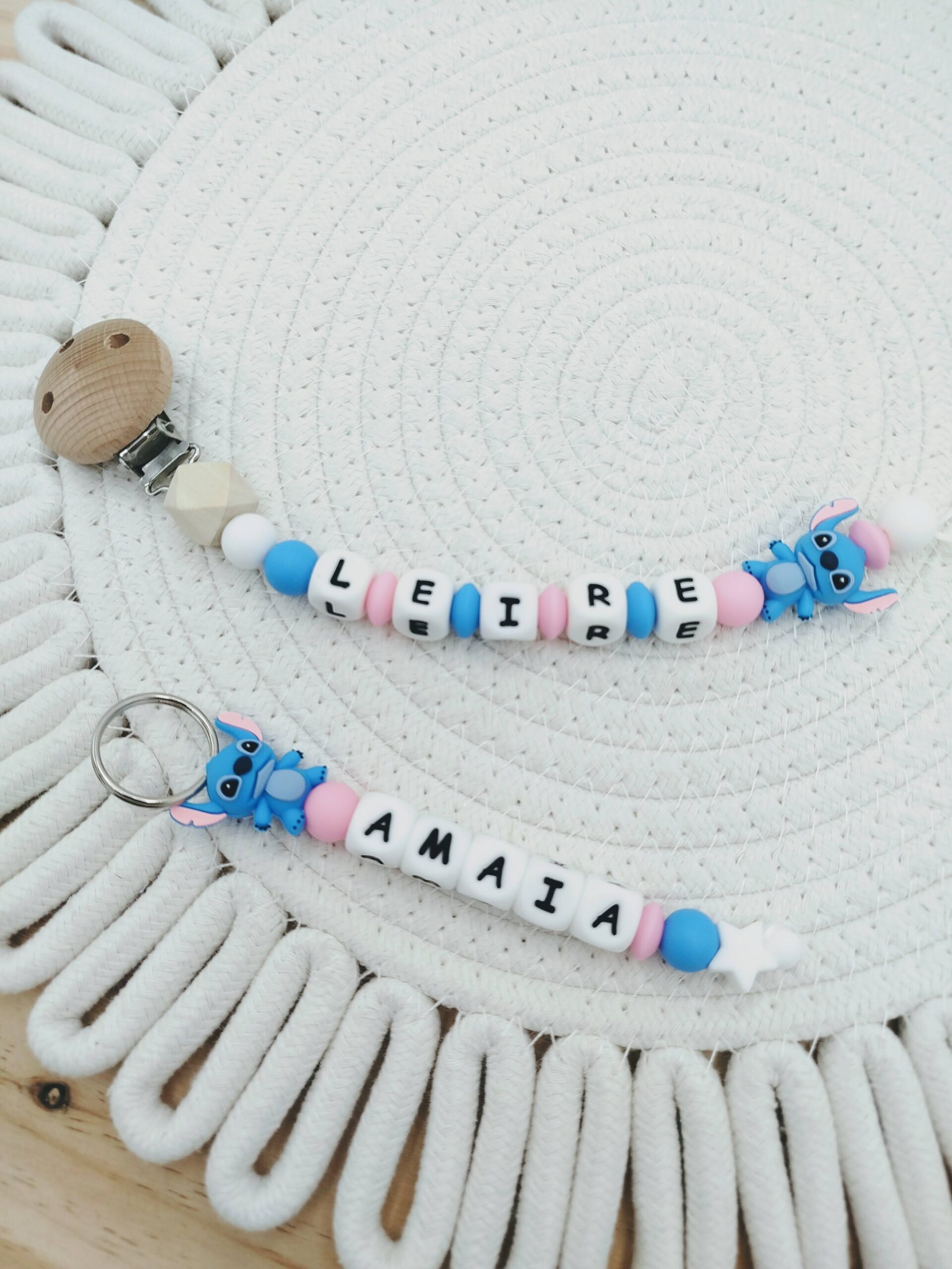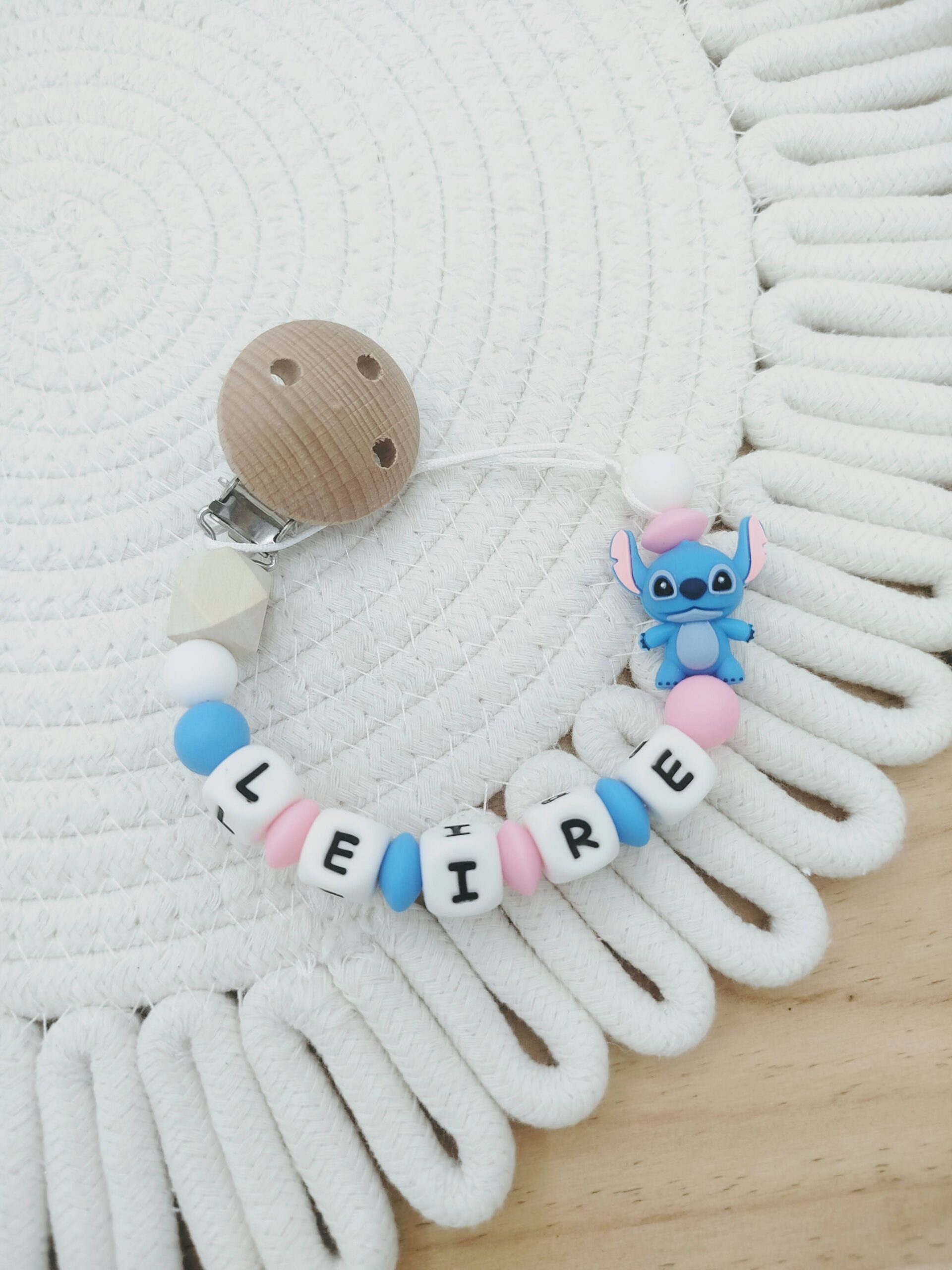 IMPORTANTE: Los chupeteros cumplen con la normativa europea DIN EN 12586. No pueden sobrepasan los 220mm de largura (sin contar el clip). Si EL NOMBE ES MUY LARGO SE ELIMINARA EL PRIMER HEXAGONO O ALGUNA BOLA.